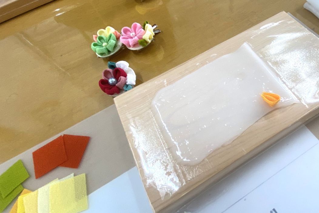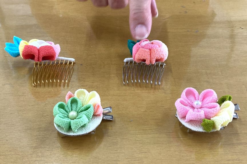 今回、私が体験させて頂いたのは、コームまたは2wayクリップにお花のつまみ細工を施す、というもの。