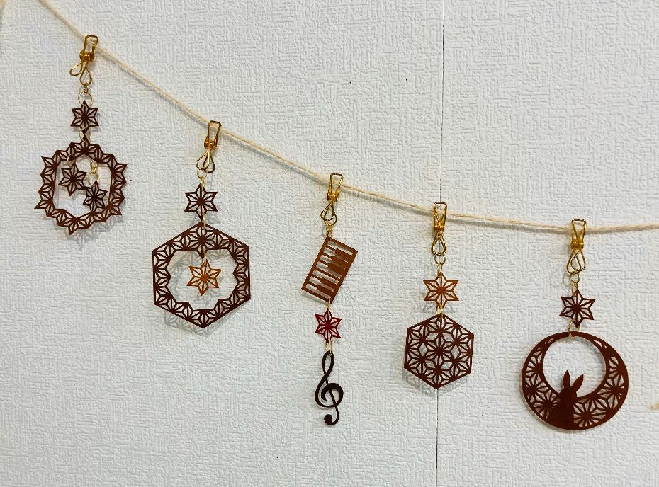 なので、楽器モチーフの伊勢型紙をオーナメントにしたり、メッセージカードを作ったり。