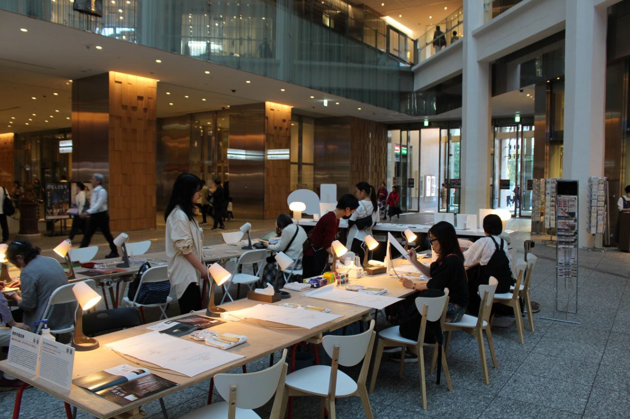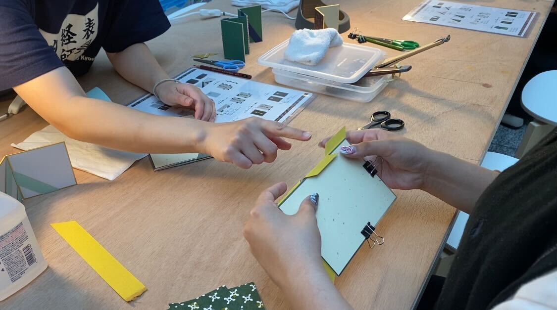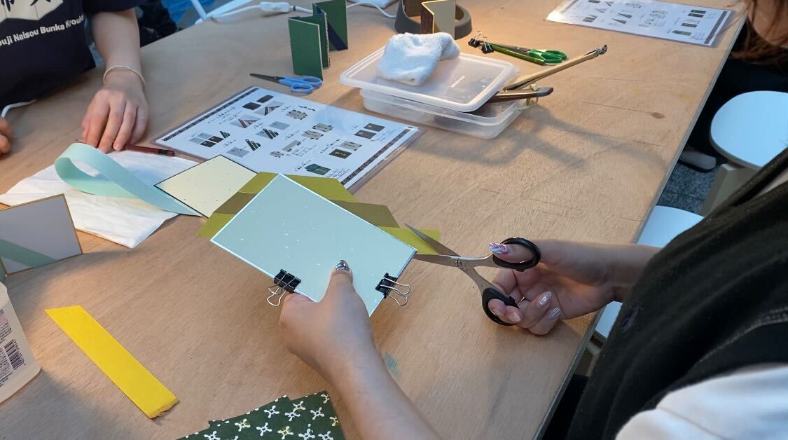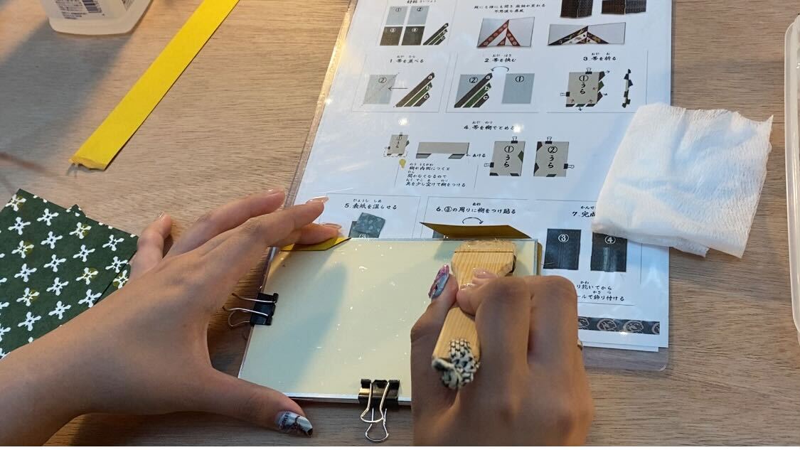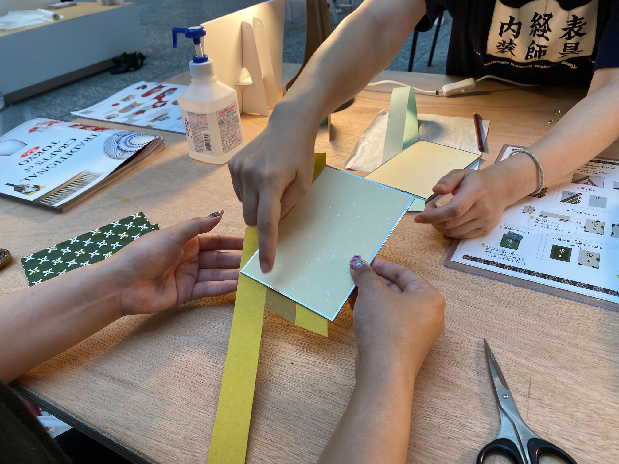 日替わりでさまざまな体験を行っており、今回私が訪れた際には「江戸表具」のからくり屏風製作体験と、「東京手描友禅」の手ぬぐいに色挿し体験が行われていました。