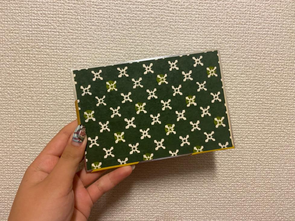 私は、緑色の落ち着いた千代紙と裏表で色の違う黄色の紙を選びました。
