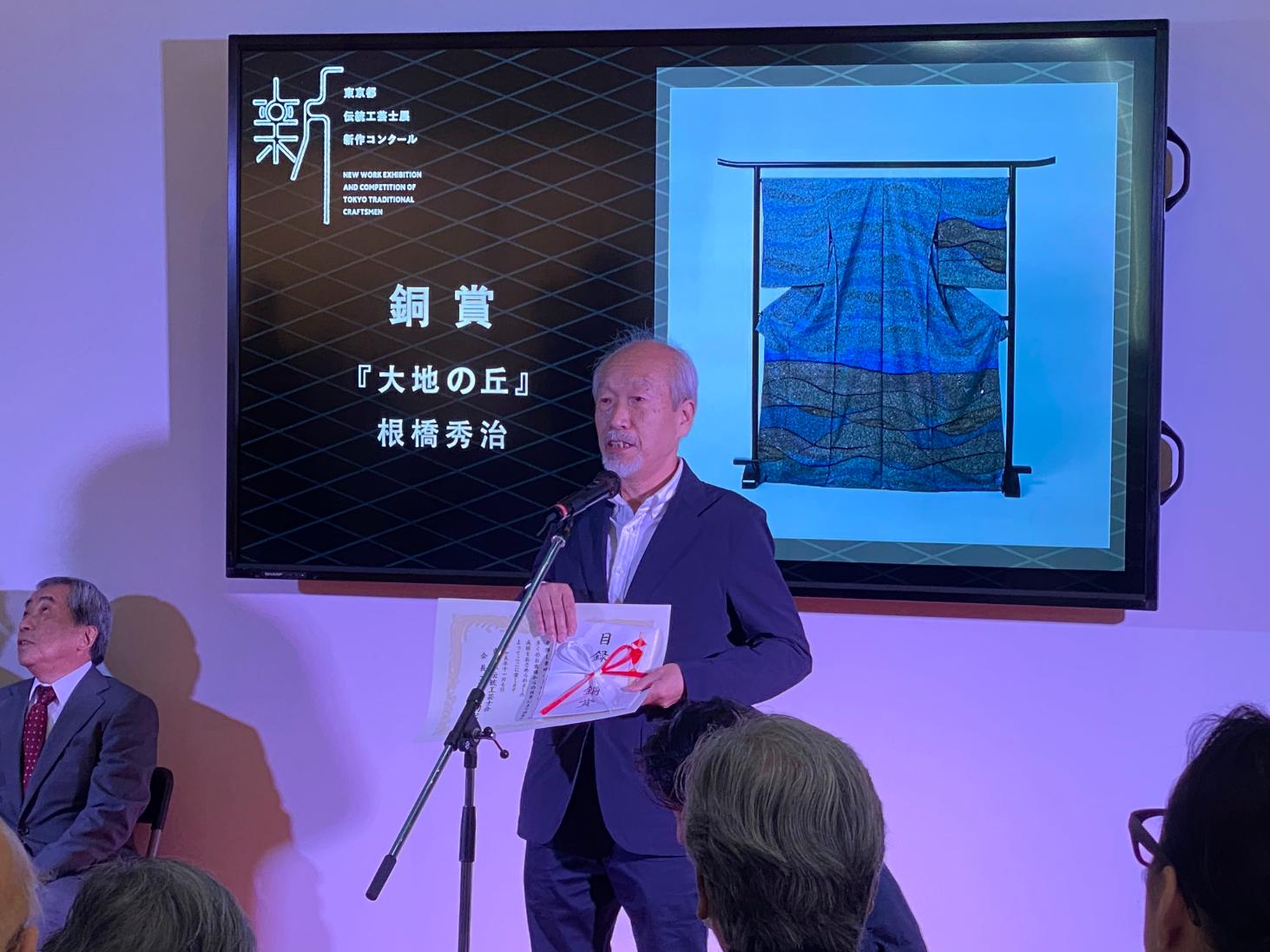 銅賞は、東京染小紋の工芸士・根橋秀治さんの「大地の丘」でした。