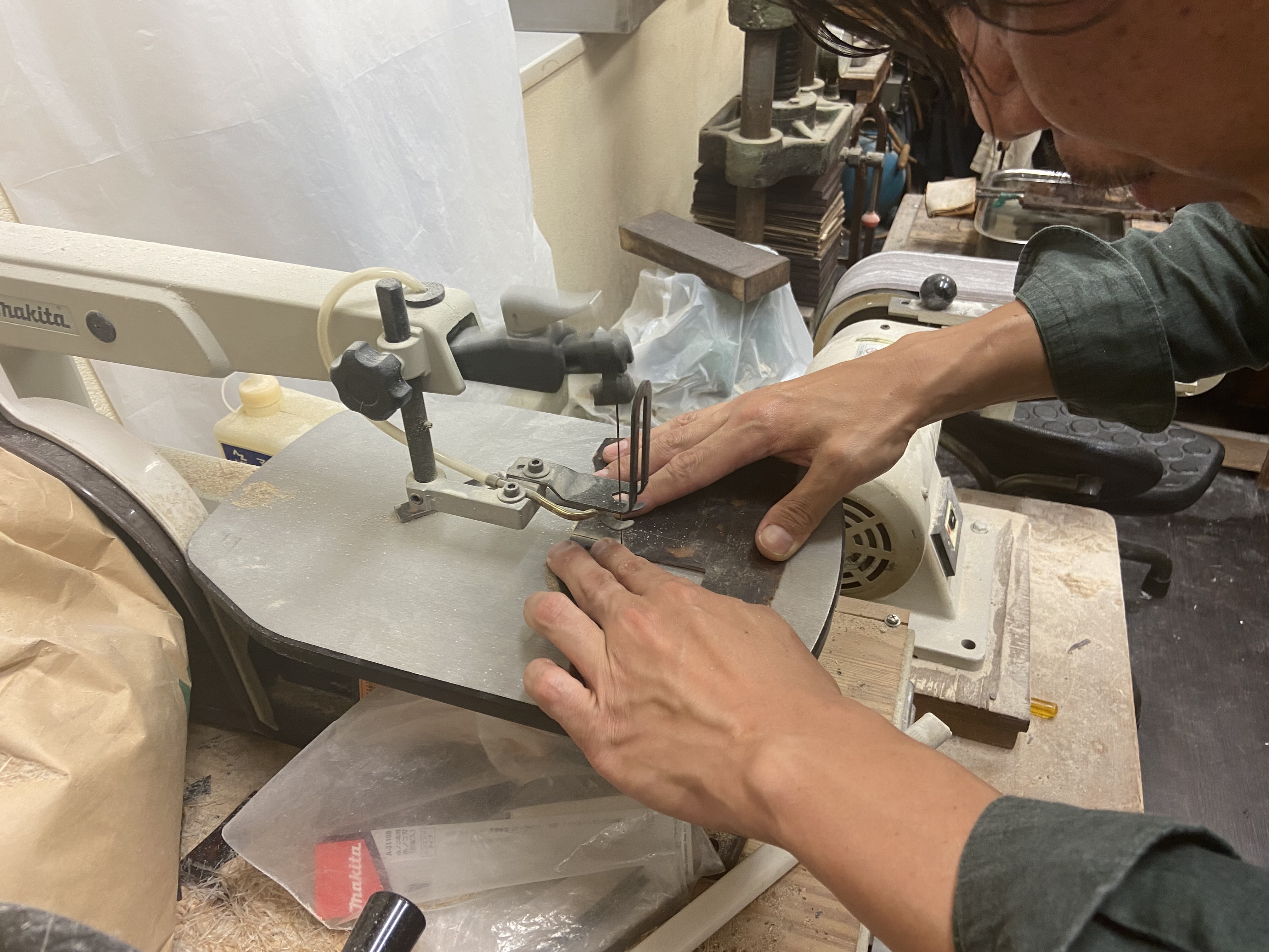 ここから、切断、曲げ、彫りなどを繰り返し、製品の形を作っていきます。