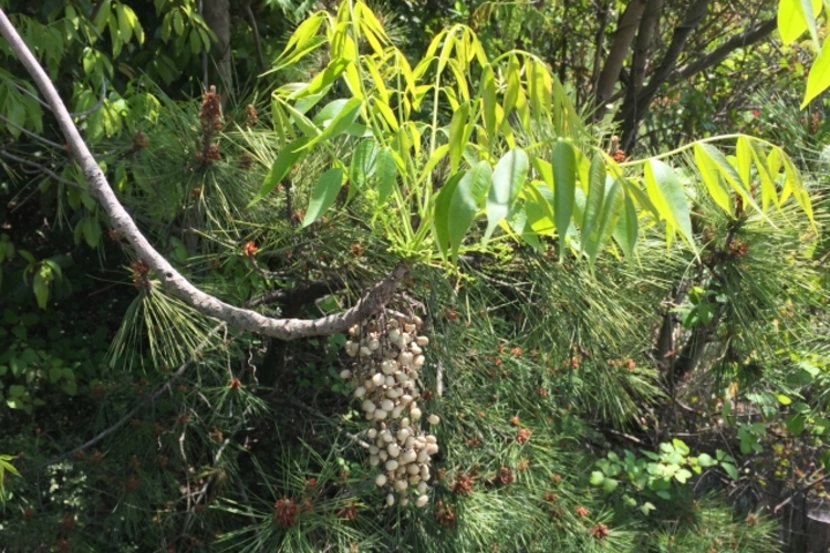 実の密着力が高く、傷つきやすい木のため、厳冬期に木にはしごをかけて登り、苦労して櫨の実を採取します。
