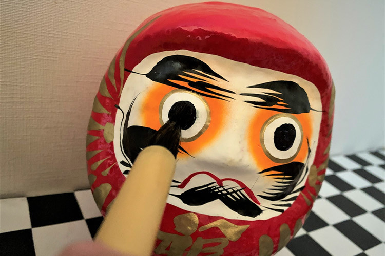 だるまを購入したら、願い事をすると同時に片目を入れます。