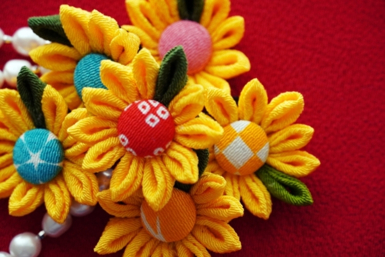 小さな布をつまんで折って組み合わせることで、立体的な美を表現できるつまみ細工。