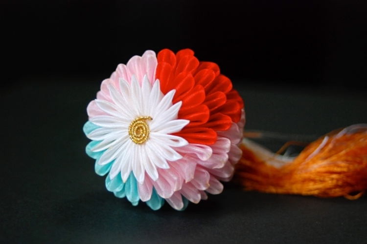 すると、そのくす玉を見た宮中の侍女達がつまみ細工を作るようになり、その後、つまみ細工はかんざしに応用され世に広がりました。