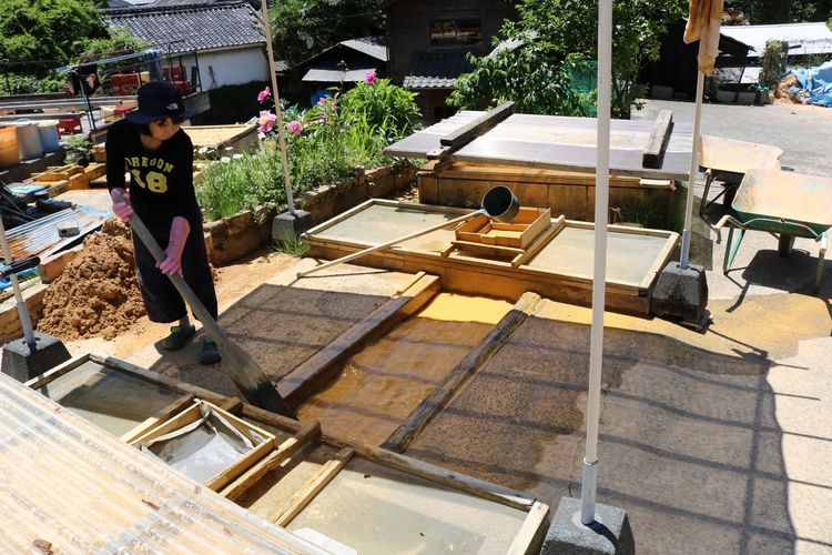 全ての工程で外部の手が入ることはなく、原土を水でかき混ぜて余分なものを取り除く「水簸」の作業は昔から女性の仕事でした。