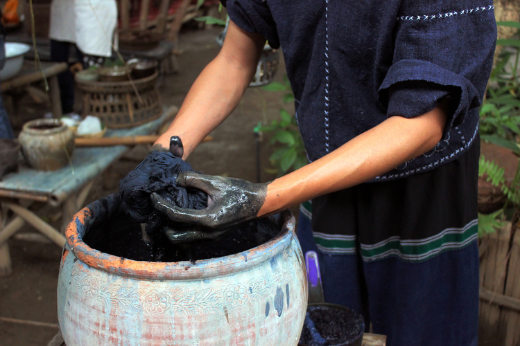 日本における藍染とは、蓼藍(蓼科の藍という植物)や沖縄の琉球藍を染料として染められた布地や、染める行為のことを指します。