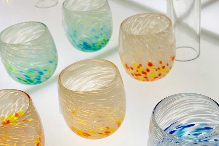 一つひとつ手作りの琉球ガラスは、ぽってりとした、あたたかみのある形が特徴です。
