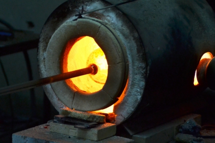 宙吹きは紀元前1世紀頃から受け継がれてきた伝統技法で、ドロドロに溶けたガラスを吹き棹に巻き取り、息を吹くことで膨らませて形を整えます。