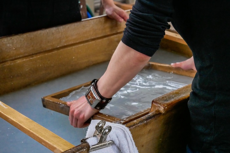 当時の紙は貴重品で、1度使用した紙でももう1度原料に溶かし、また紙へと再利用する漉き返しも行われています。