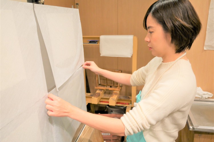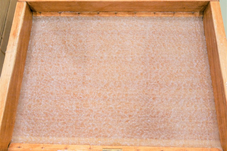 次に、枠を外して出来た和紙を乾かすためにシートに移します。