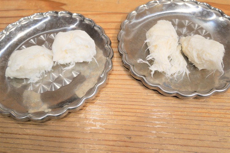 割いた時に断面の繊維が右の方が長いことが分かります!