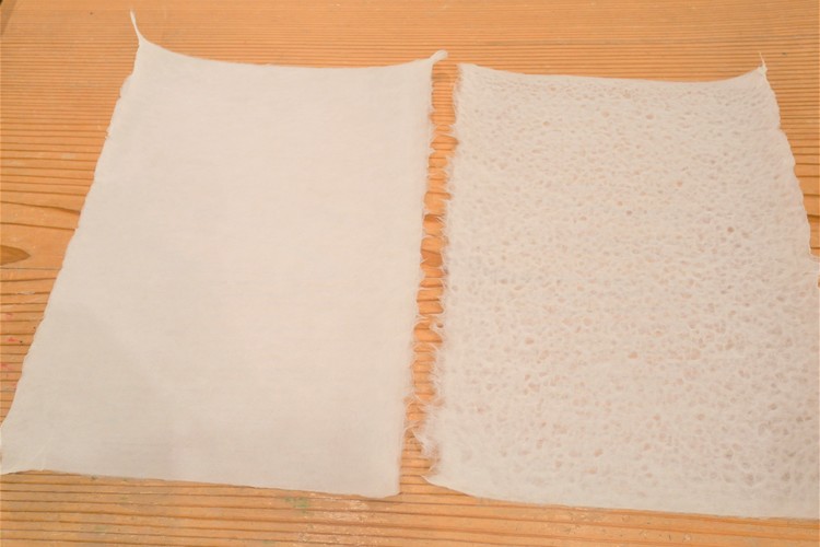 先程の体験でも行ったように縦横に振ることによって一本一本の長い繊維が絡まり、