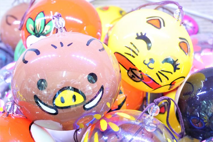 コロンとした丸いフォルム、干支のイノシシや招き猫が描かれていてとても可愛らしいですね。