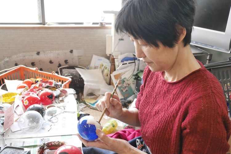 代々家族で風鈴作りを行なっている、篠原風鈴本舗の三代目 裕さんの元へ嫁いできたことをきっかけに、風鈴作りの道に入られたそうです。