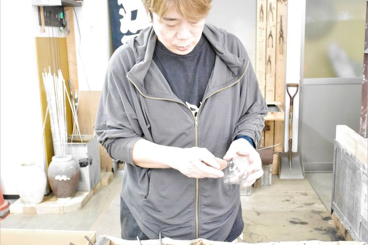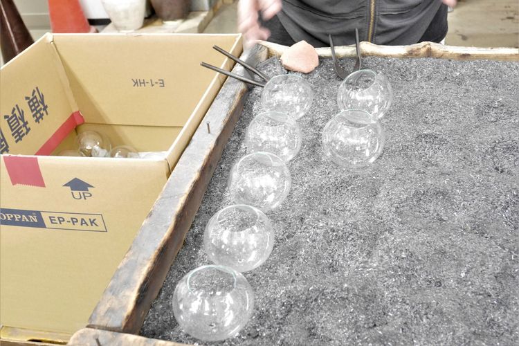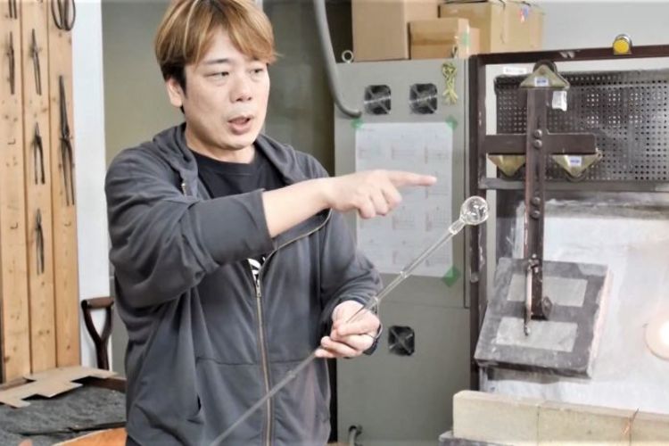 1つ目は、型を使わずに「宙吹(ちゅうぶ)き」で作られること。