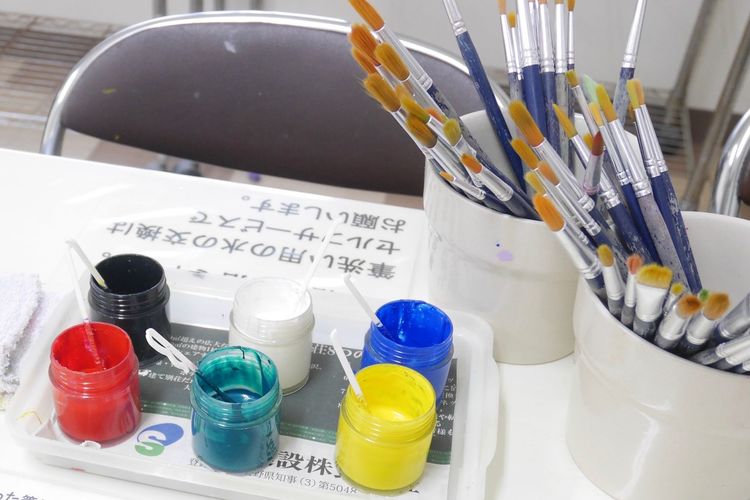 絵付け体験では絵の具を使うので、汚れてもいい服装で来てくださいね♪