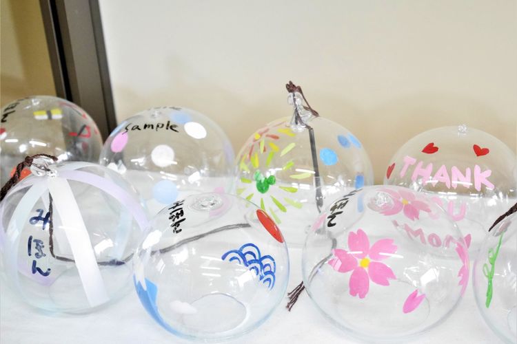 同じ形、柄に見えても全て職人さんの手作業で作られているので、ガラスの大きさや厚さが異なるので、一つひとつ鳴る音が変わってきます。