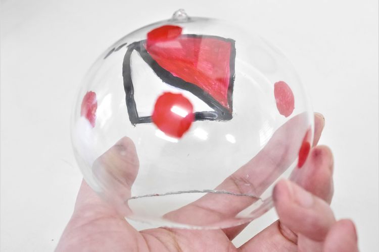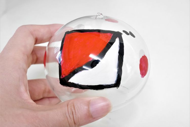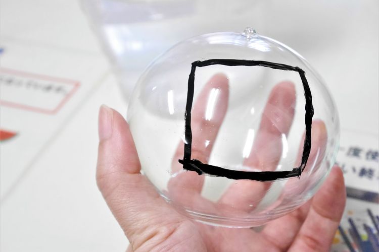 大量生産で作られているものは、外側に柄のシールを貼っているものが多いのですが、江戸風鈴はガラスの内側から手描きで絵付けをしています。