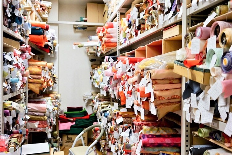 最後に、木目込人形に使用する生地の倉庫を拝見させていただきました。