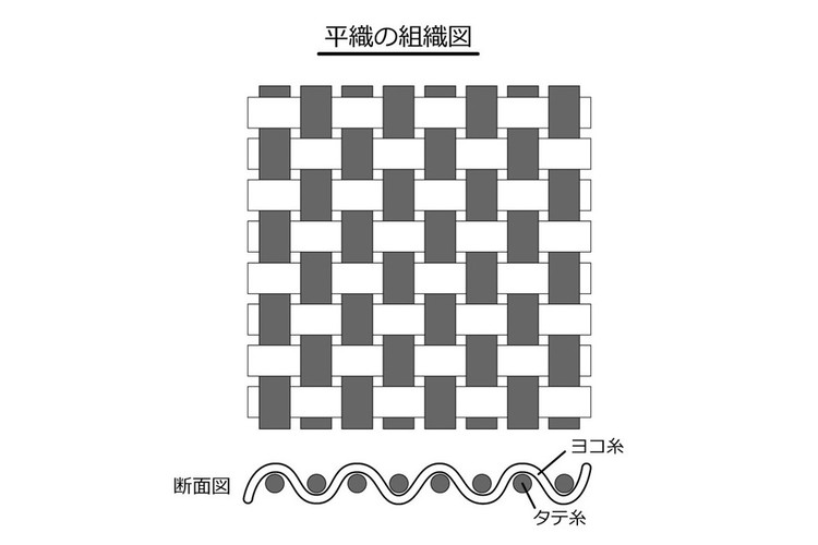平織とは、経糸と緯糸が1本ずつ交互に交差する、織りの基本といわれる技法です。
