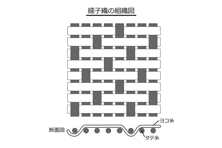 経糸と緯糸の交差する点に、一定の間隔※2があるため、経緯のどちらかの糸が浮き、交差する点が少ないのが特徴の技法です。