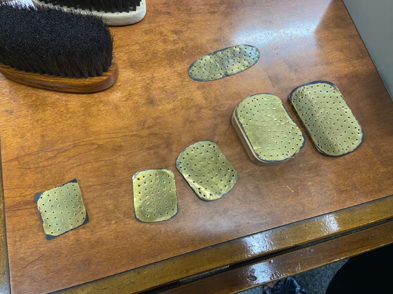 この穴の形状は、後で植え込む毛束の形状に沿っており、根本が締まるため頑丈なブラシをつくることができるのだとか。