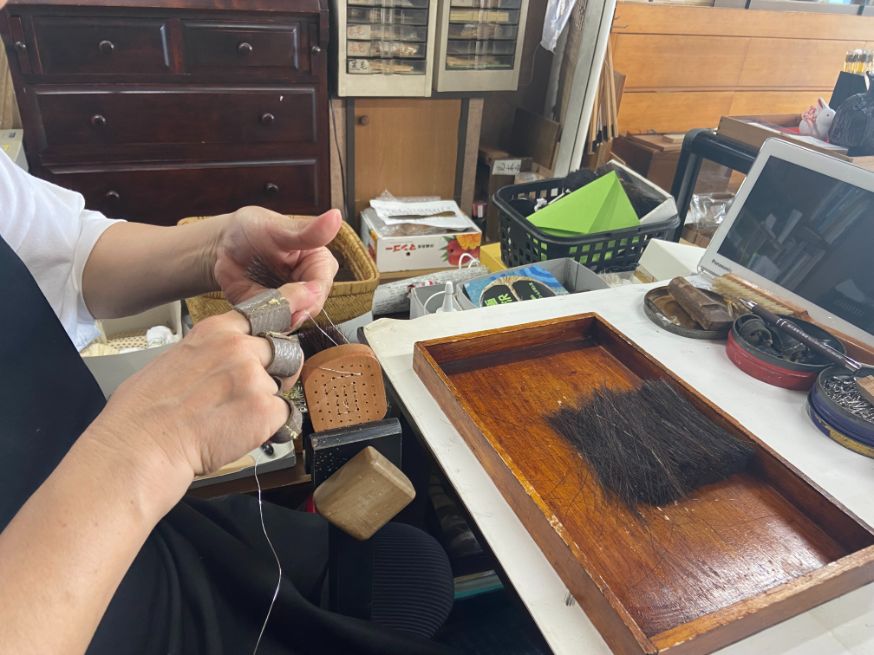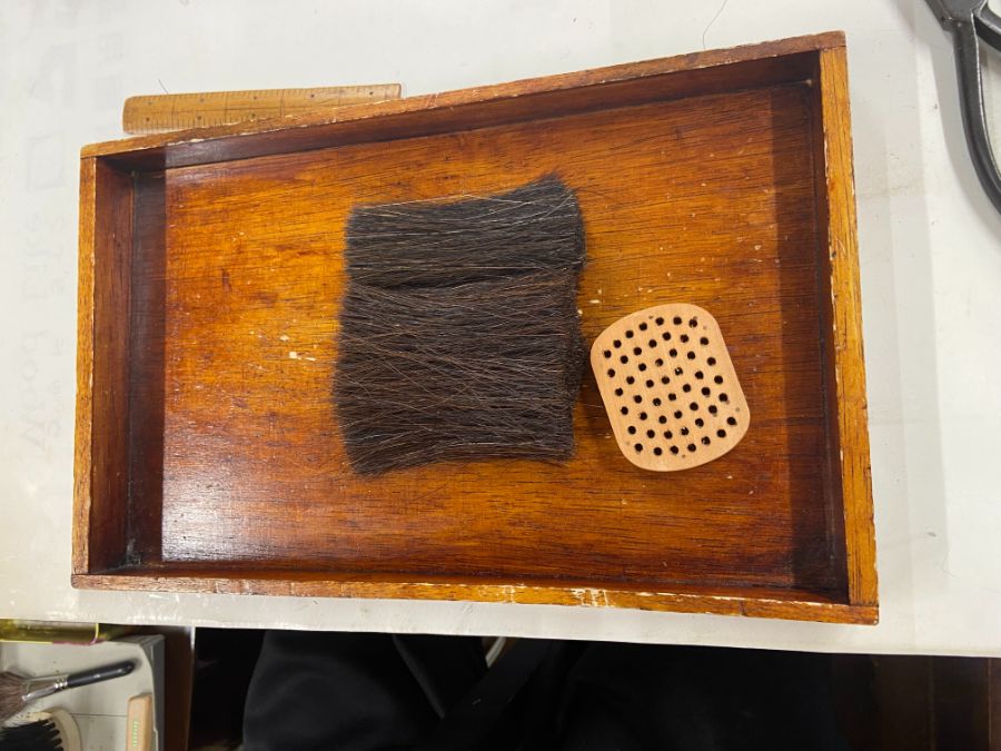 今回は、実際に工房に伺い、版画の摺師が絵の具を伸ばす際に使用するブラシの制作の様子を見学させて頂きました!