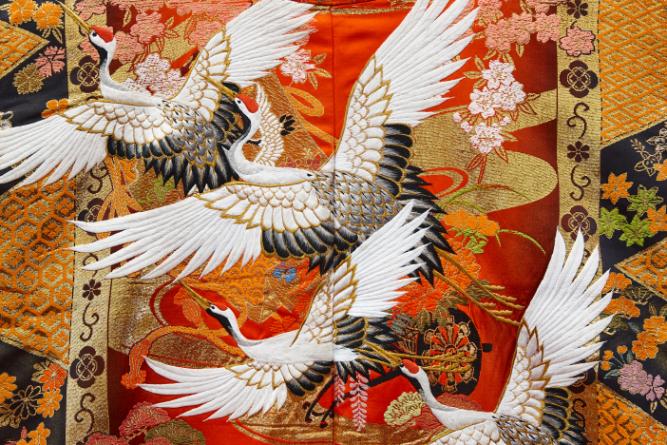 その優雅で気品がある姿は、幸せを願う場にふさわしいと、結婚式の打掛などに用いられています。