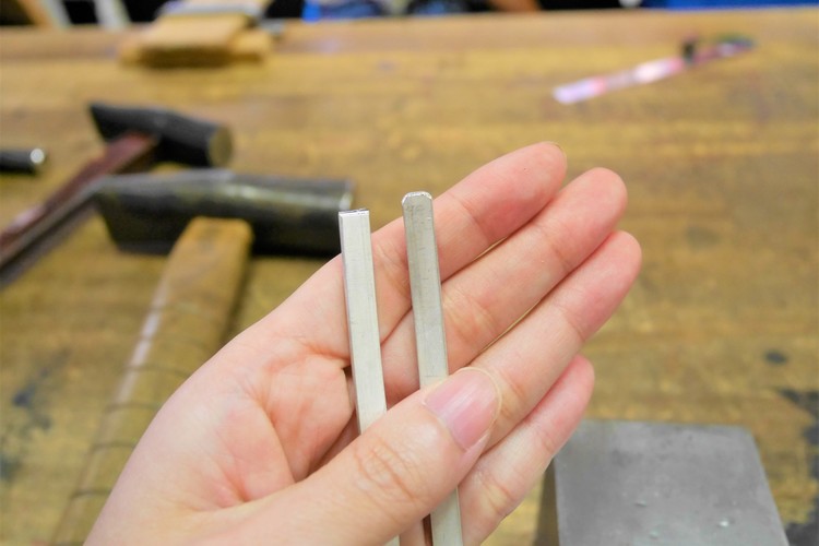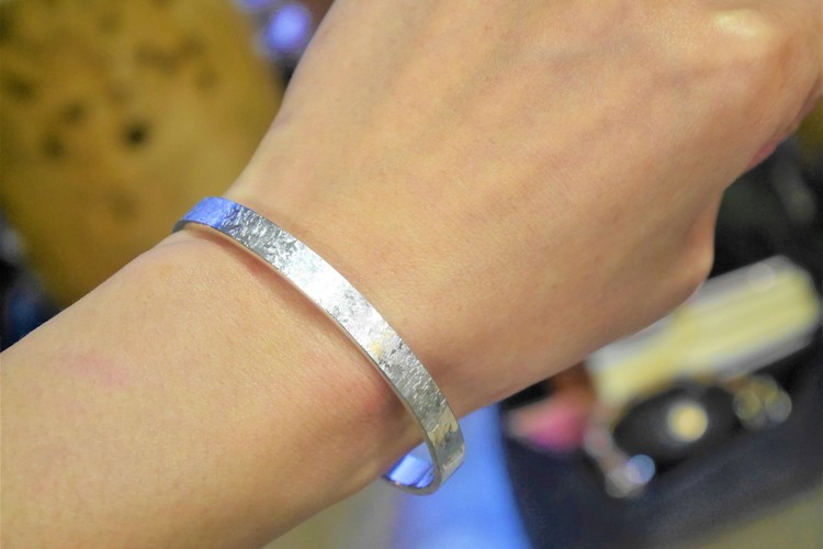 まずはこの板状になっている銀を、自分の腕に合わせてペンチで切ってもらいます。