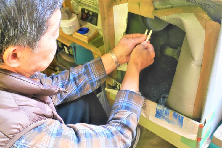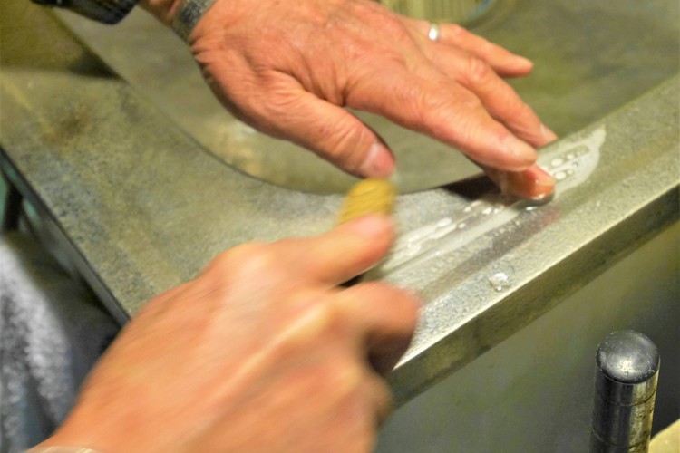 ここから私も工具を使って、裏面に銀の証明刻印を入れます。