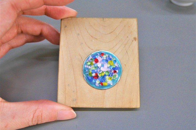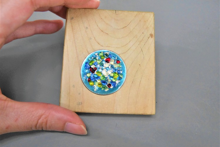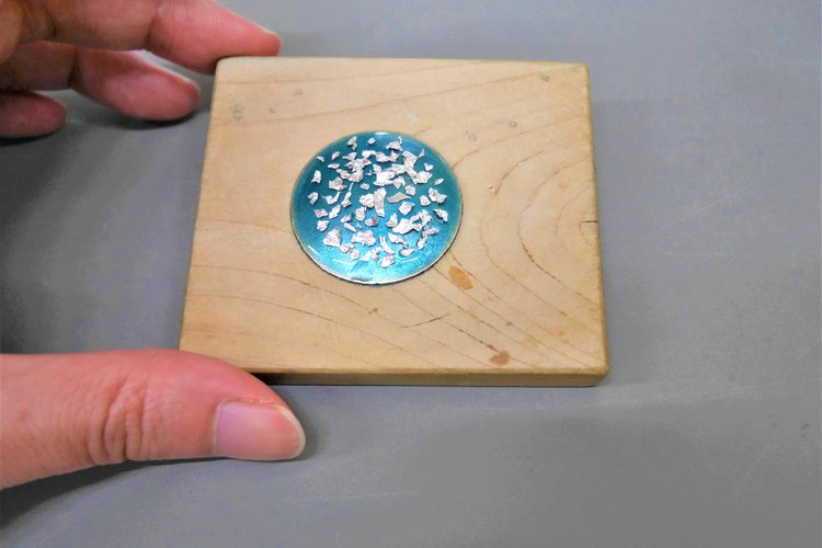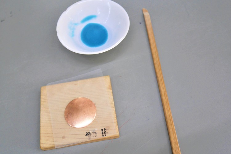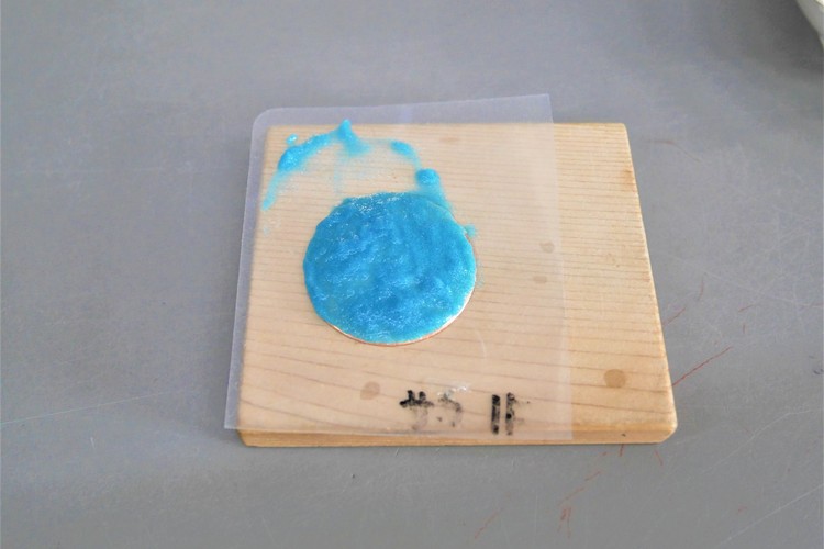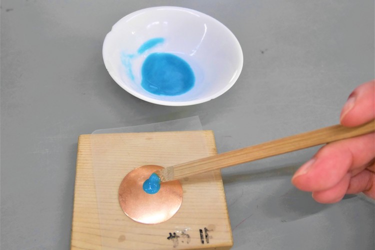 それでは、先程選んだ金属の土台に釉薬を乗せていきます。