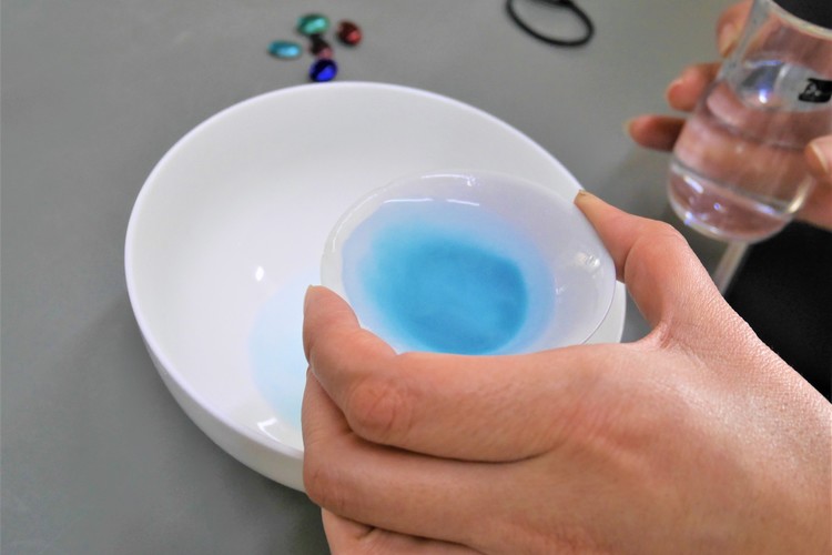 ガラスなので絵の具のように水で溶かして薄めてグラデーションにしたり、他の色を合わせたりしても色は混ざりません。