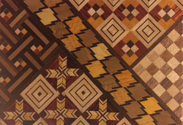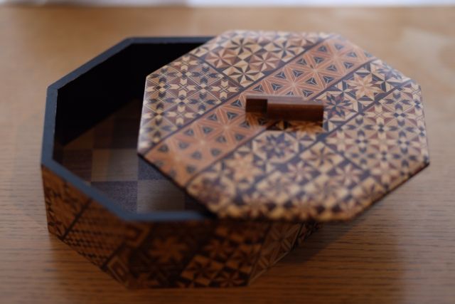 さまざまな色合いと木目を活かした木材を寄せ合わせ、継承された高い技術で作られる精緻な幾何学模様は、思わず感嘆の声が出てしまいそうな美しさ。