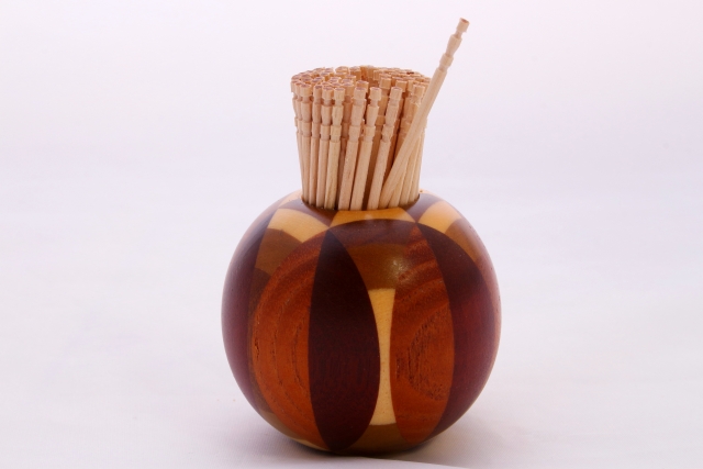 さきほどご紹介したヅク(ズク)貼りの寄木細工とは異なり、模様を組み合わせて作った種寄木そのものを、ロクロで引いて立体的な器や丸盆などの木製品に加工する技法のことを「無垢作り」と言います。