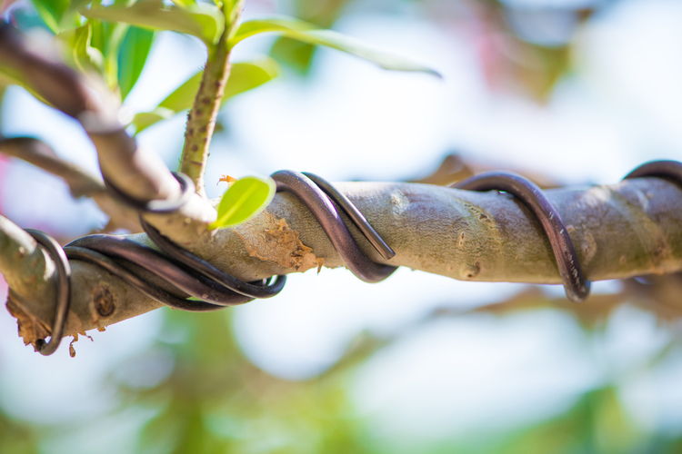 銅線が固いと曲げにくいので、無理に針金を曲げようとすると、枝を折ってしまったり幹に負担がかかったりしてしまいます。