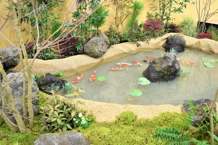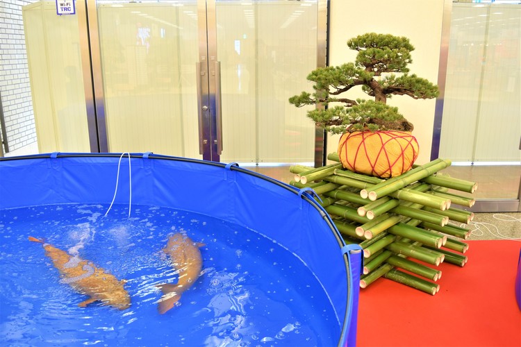 さらに、“錦鯉と盆栽”がコラボした鑑賞スペースも。