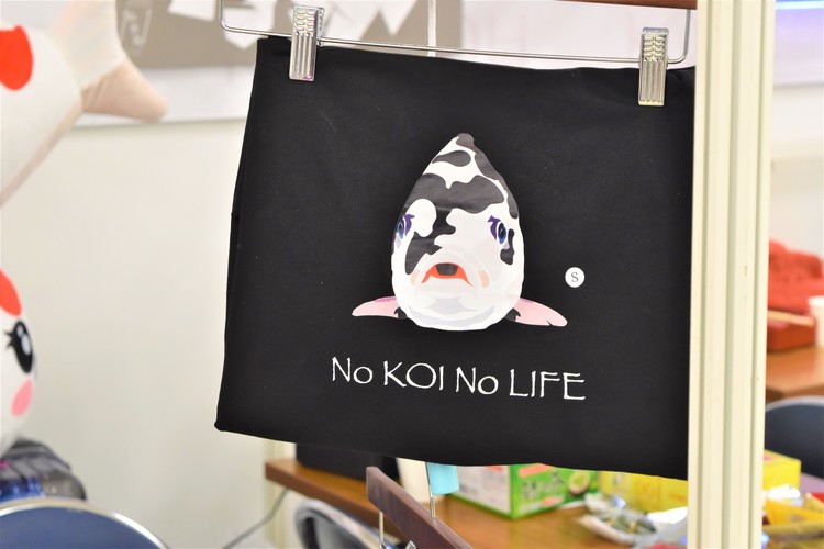 錦鯉をモチーフにしたTシャツ、お菓子、アート作品までなんでも勢揃い。
