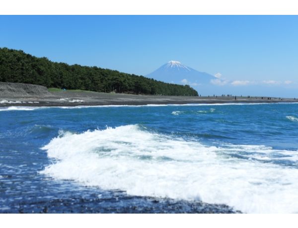 松原と言われるだけあり、全長7kmに渡り松林が海岸線に茂っており、富士山や伊豆半島を一望できます。