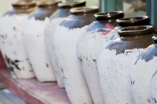 甕を置くことで不要な雑音を吸収し澄んだ音をつくる効果があると言われ、舞台全体が一体となるように甕が音響効果を担っているのです。