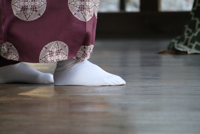 昔の人は下着を着けていないわけですから、膝を離していると最悪「見えて」しまいます。