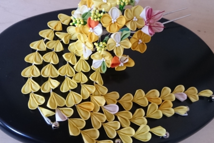 つまみ細工は、小さな正方形の布で作った花びらなどを組み合わせて作品にしていく、日本の伝統工芸品です。