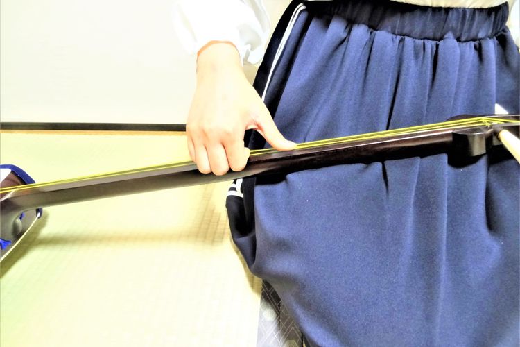 何も工夫しないと、三味線がフラフラ動いて演奏しづらいので、注意しましょう。